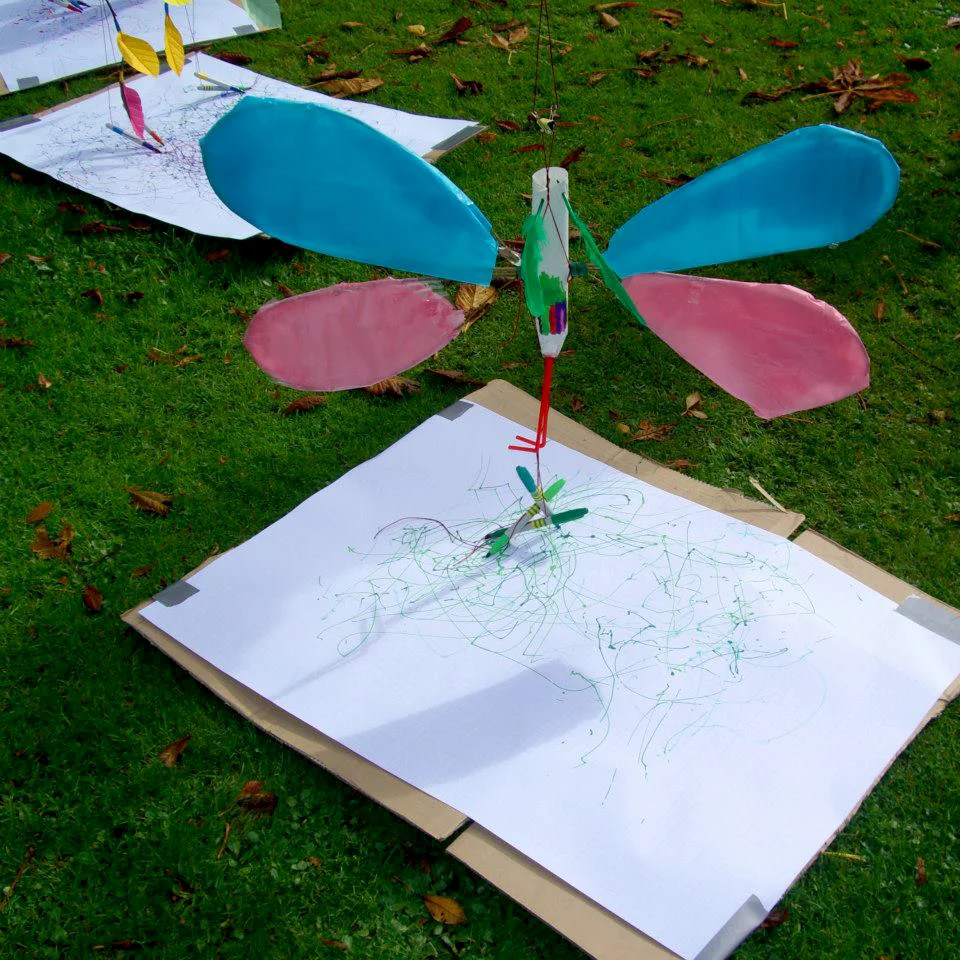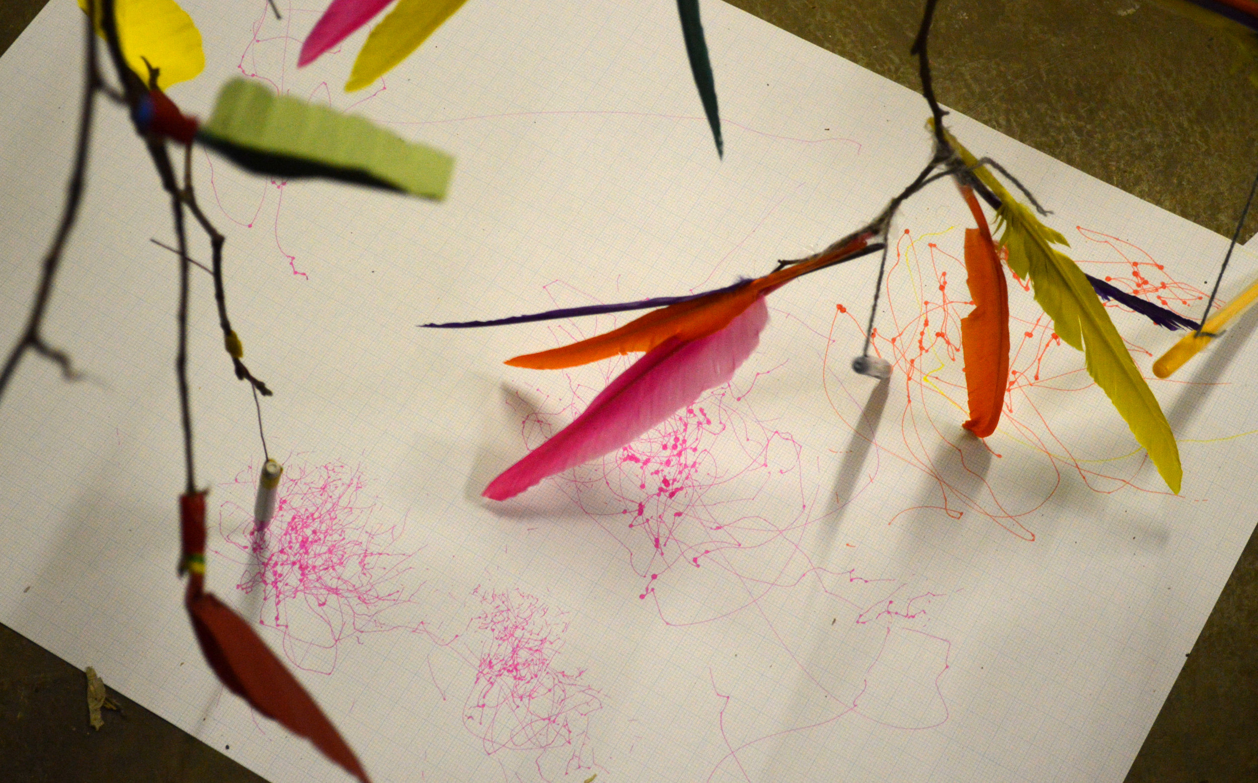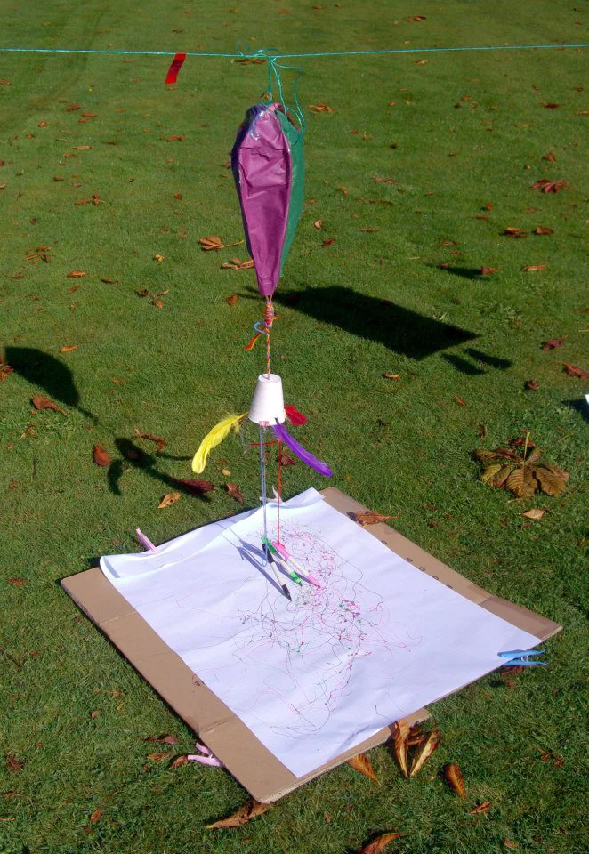 WIND MAPPING enables participants to use curious apparatus to capture the power of wind to create beautiful, ethereal drawings. This is fascinating on many levels, not least using the invisible to create appealing visual images – harnessing wind as a medium to bring movement to art.