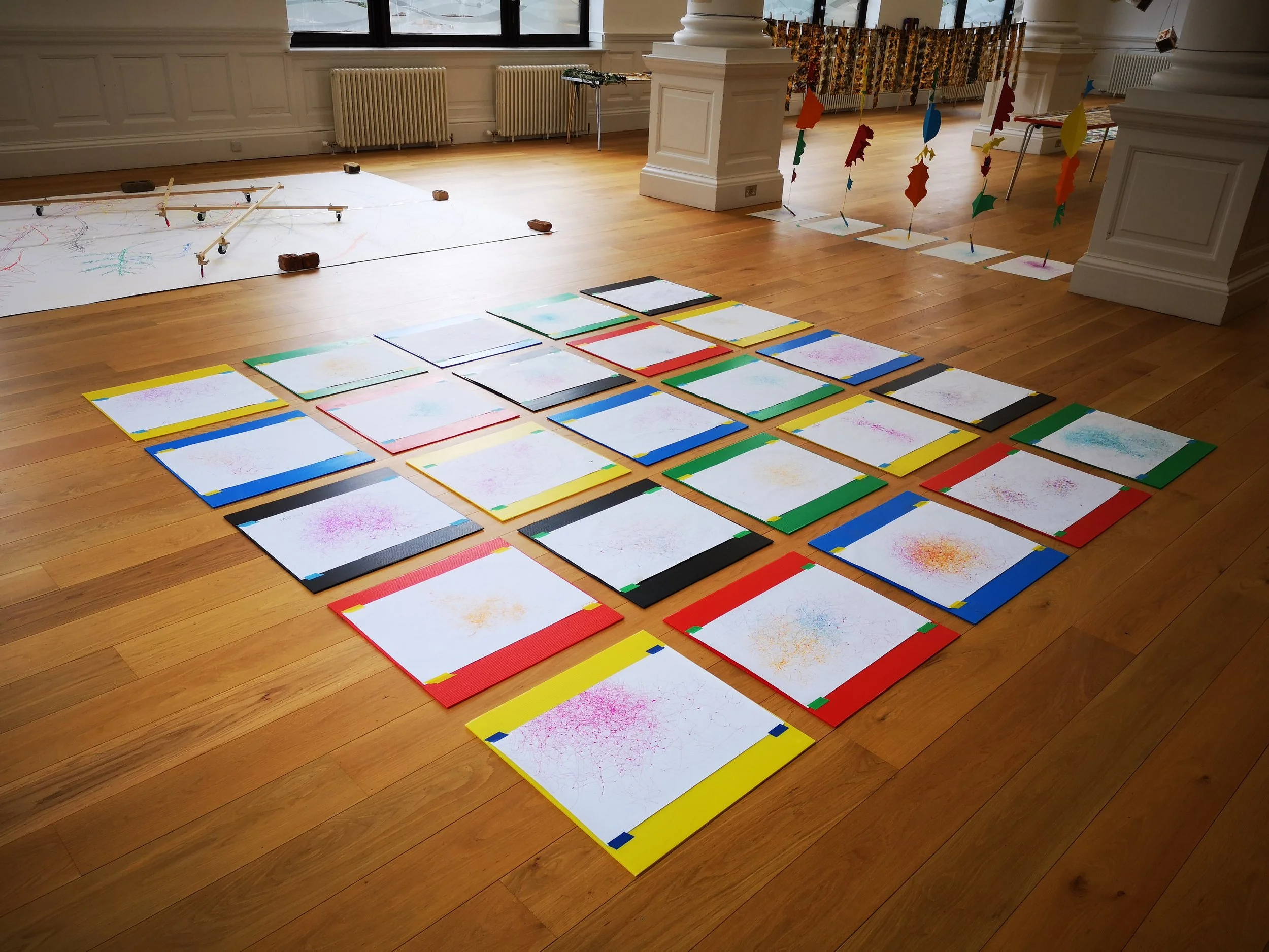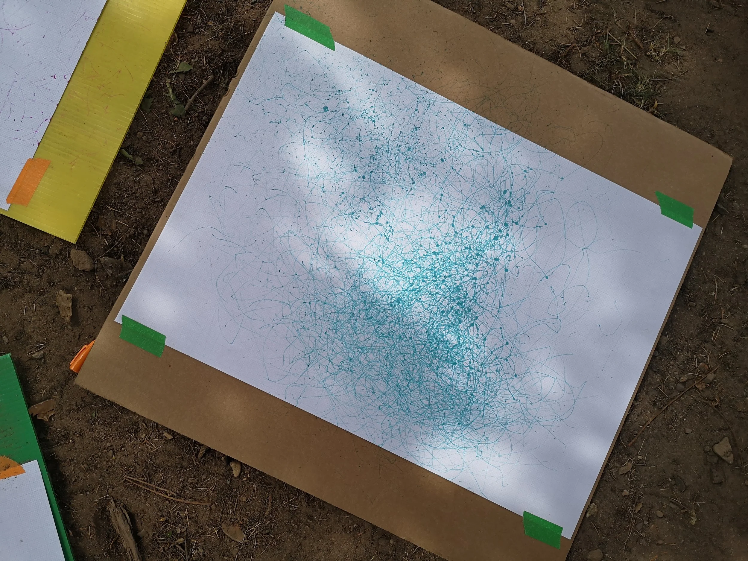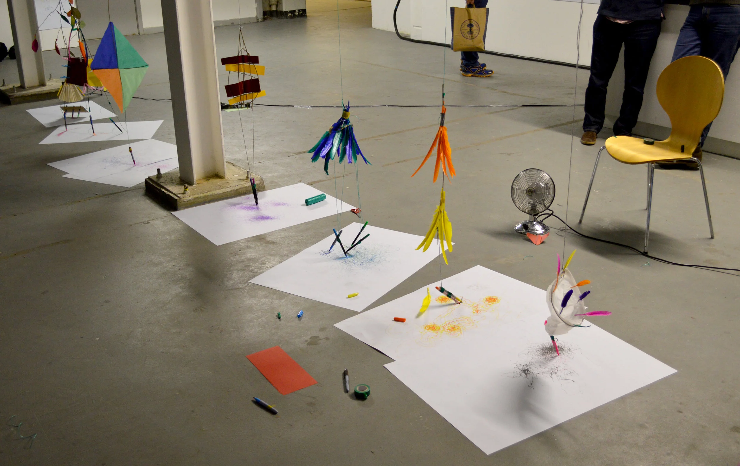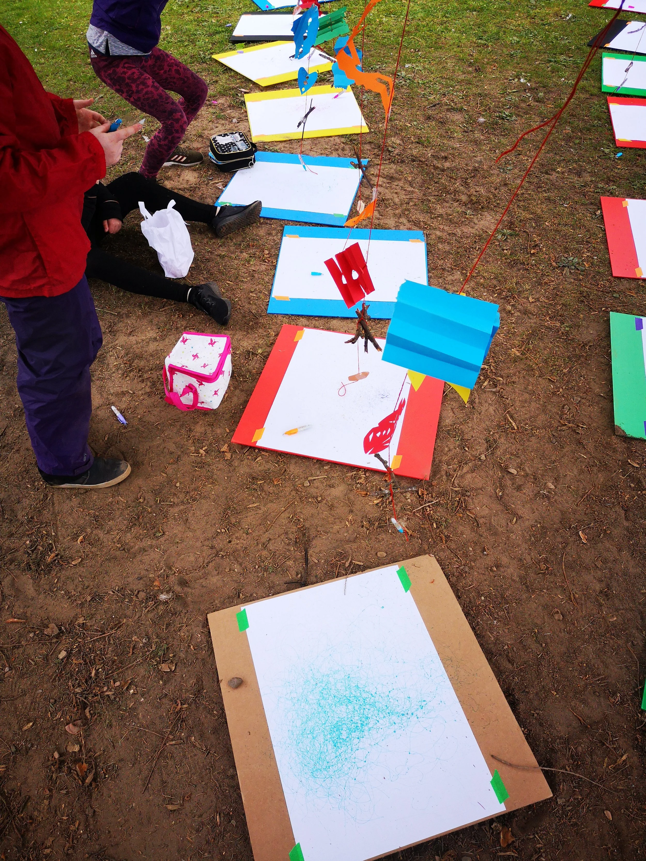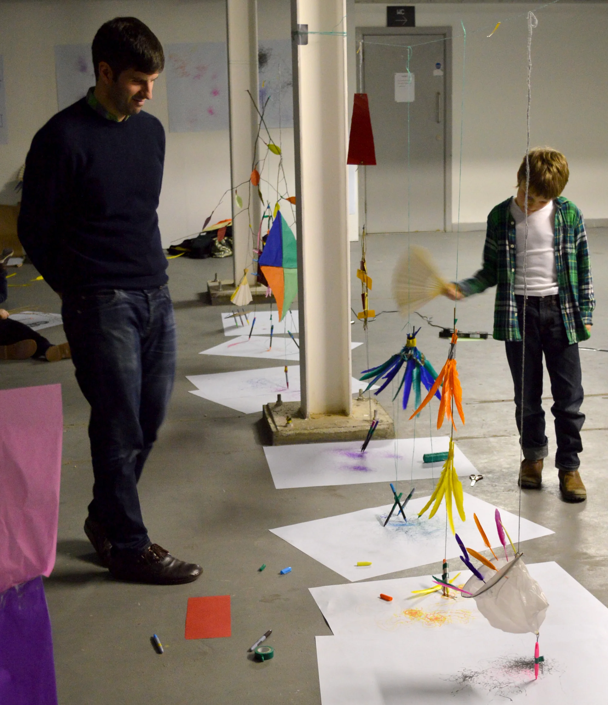 These workshops explore the impermanent nature of the weather and the traces it leaves behind, encouraging observation about the surrounding environment in a fun and interactive way. Using a process of experimentation and adaptation of the materials provided, participants reveal the ever-changing movement of the wind and create a set of unique cartographic records or WIND MAPS. They revelled in the fact that no two drawings are ever the same.